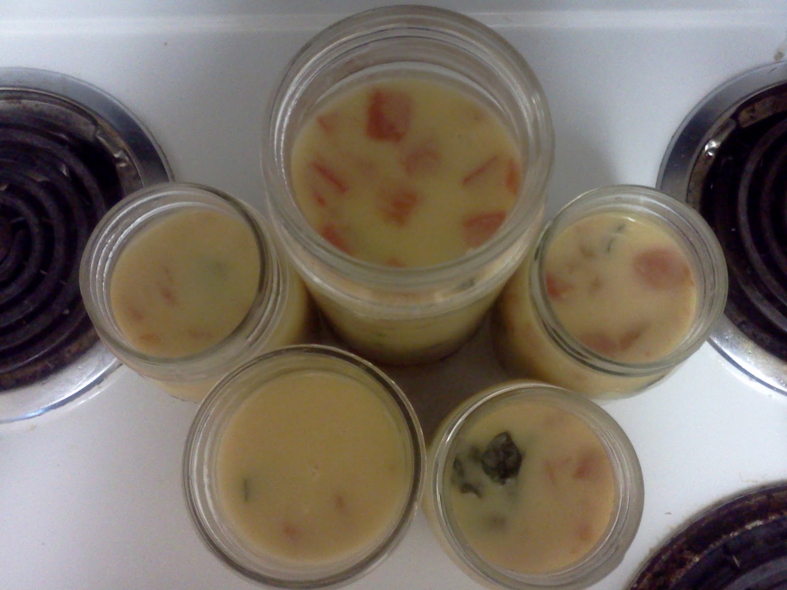 I had enough to fill two bowls for dinner, one tall glass jar which holds two servings, and 4 single smaller jars. That's a lot! This way now I have at least 6 meals from one pot. These are great on days you lack energy and want something quick, and even better on days when you are feeling a bit run down. You can add some cayenne pepper for a little kick as well, or for folks in my state - green chili. I don't add anything spicy to ours because my daughter isn't a fan of spicy stuff and I'm really not either. But again, as with any of my recipes you can tweak them to your liking! :)